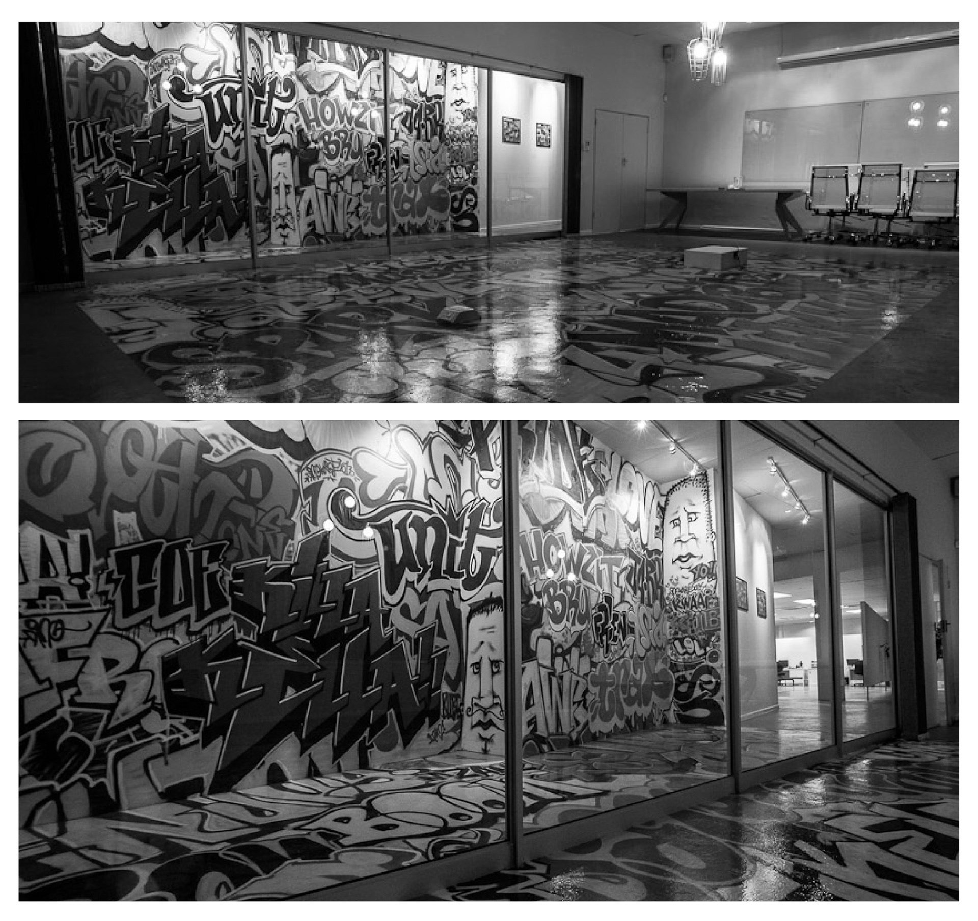 Myself and a group of artists were tasked with creating an overlayed graffiti style wall in greyscale for a companies new interior office space. The project was led by Bazil Baxter, a South African artist and designer - www.bazilbaxter.com